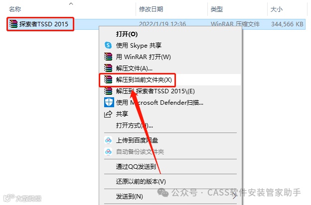 1.下载【TSSD 2015】软件安装包,鼠标右击压缩包选择【解压到当前文件夹】。