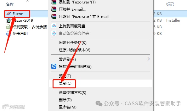 13.返回到【Fuzor 2019】文件夹中,鼠标右击【fuzor】文件选择【复制】。