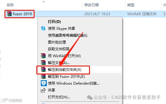 1.下载【Fuzor 2019】软件安装包,鼠标右击压缩包选择【解压到当前文件夹】。