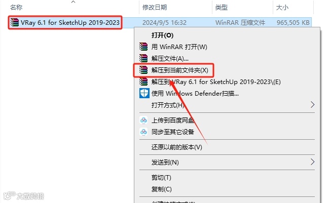 1.下载VRay软件安装包,鼠标右击压缩包选择【解压到当前文件夹】。