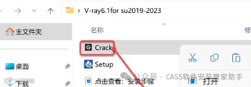 9.打开安装包解压后的【V-ray6.1for su2019-2023】文件夹,鼠标右击【Crack】选择【以管理员身份运行】。