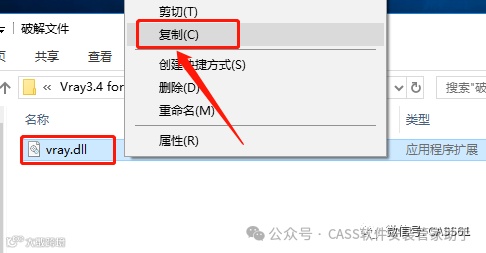 20.鼠标右击【vray.dll】文件选择【复制】。找到并打开vray安装路径中的【bin】文件夹。
