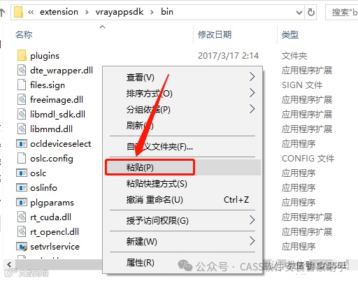 30.在文件夹空白处,鼠标右击选择【粘贴】之前复制的【vray.dll】文件。