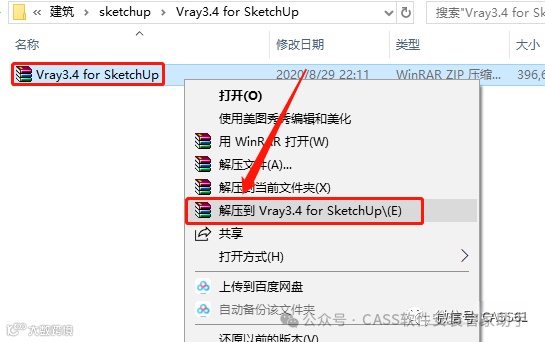 1.下载软件安装包,鼠标右击软件压缩包,选择【解压到Vray3.4 for SketchUp】。