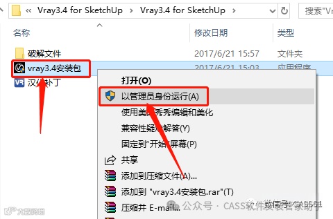 4.鼠标右击【vray3.4安装包】安装程序,选择【以管理员身份运行】。