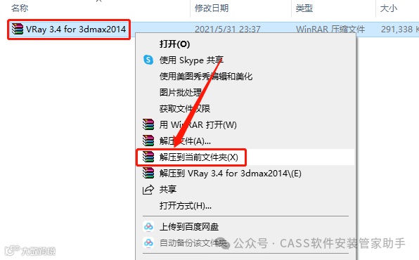 1.下载VRay软件安装包,鼠标右击压缩包选择【解压到当前文件夹】。