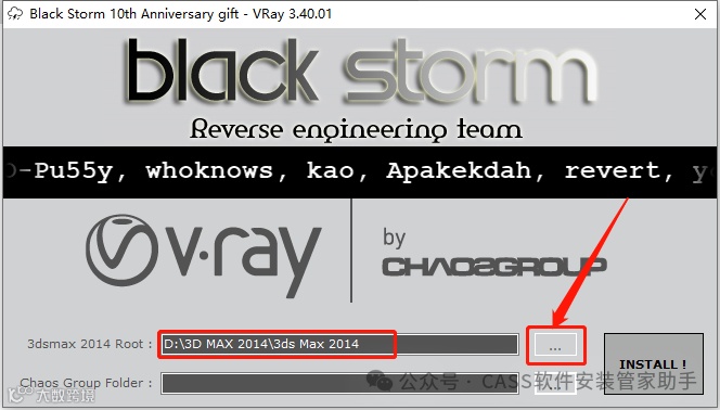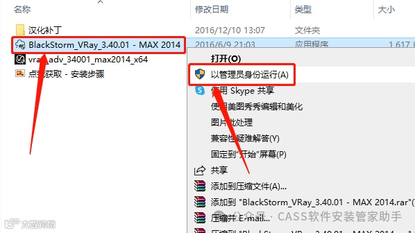 8.返回到解压的【VRay 3.4 for 3dmax2014】文件夹中,鼠标右击【BlackStorm_VRay_3.40.01 - MAX 2014】,选择【以管理员身份运行】。