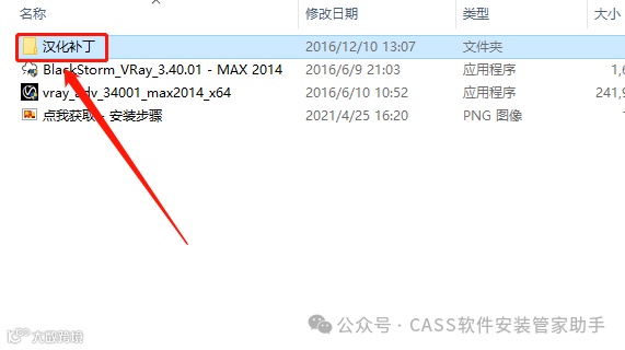16.返回到【VRay 3.4 for 3dmax2014】文件夹中,打开【汉化补丁】文件夹。