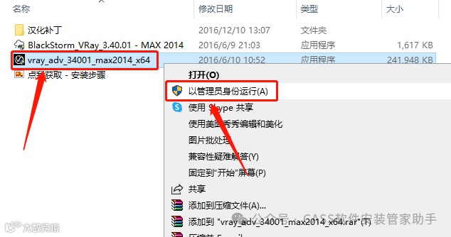 3.鼠标右击【vray_adv_34001_max2014_x64】安装程序,选择【以管理员身份运行】。