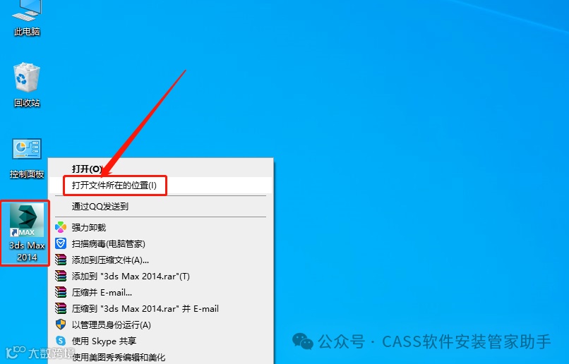 18.在桌面上鼠标右击3dmax软件图标,选择【打开文件所在的位置】。