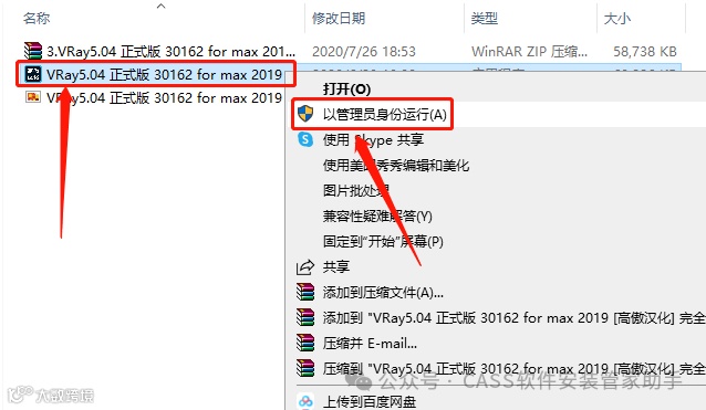 3.鼠标右击【vray_adv_50004_max2019_x64】安装程序,选择【以管理员身份运行】。