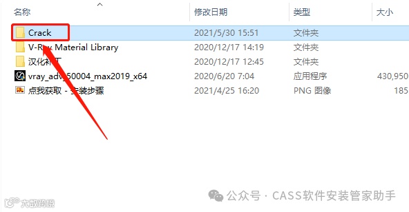 9.返回到解压的【VRay5.04 for 3dmax 2019】文件夹中,然后打开【Crack】文件夹。