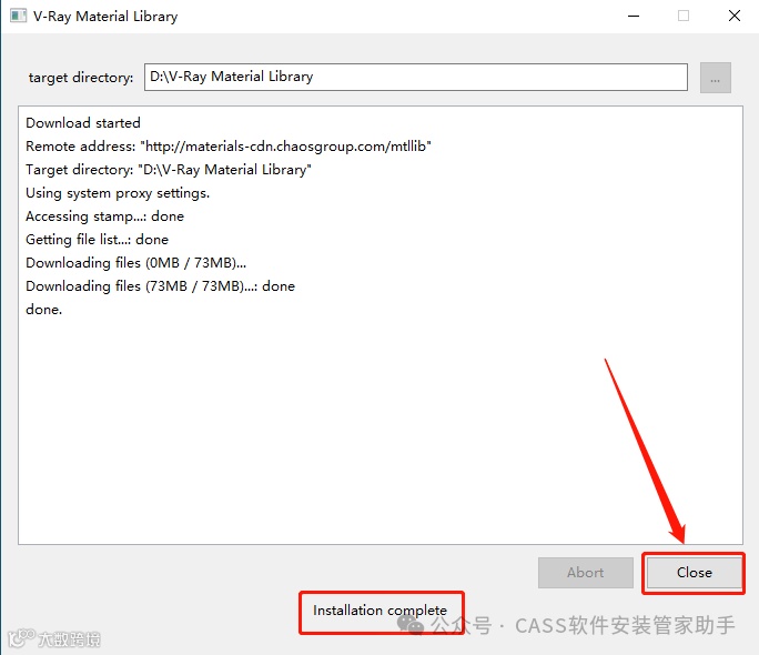 34.底部显示【installion complete】,点击【Close】。