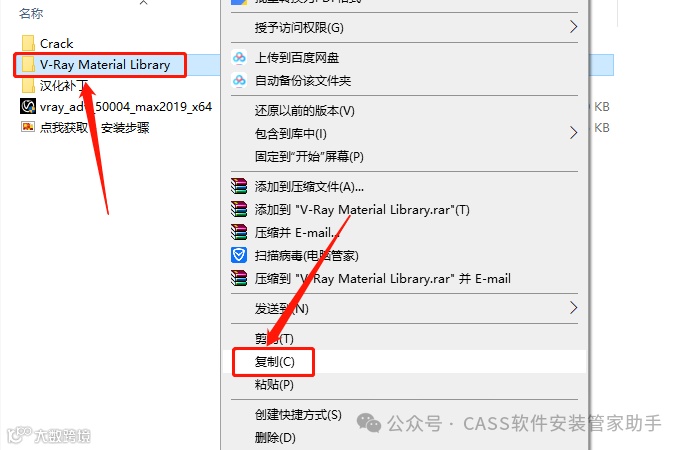 25.返回到解压的【VRay5.04 for 3dmax 2019】文件夹中,然后复制【V-Ray Material Library】文件夹。
