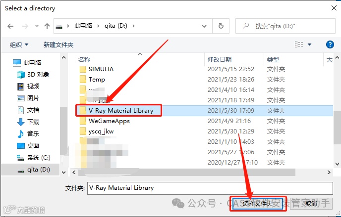 31.选中【V-Ray Material Library】文件夹,然后点击【选择文件夹】。