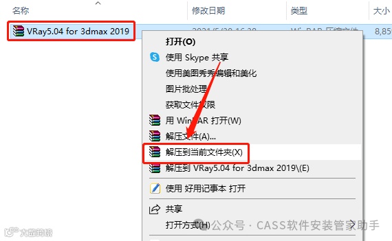 1.下载VRay软件安装包,鼠标右击压缩包选择【解压到当前文件夹】。
