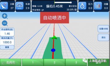 6)变量喷药机配置引导性导航,可指示车辆偏离行驶方向的距离,降低夜间作业的难度。实时显示的偏移量还可以避免驾驶员走错行,避免重喷漏喷;