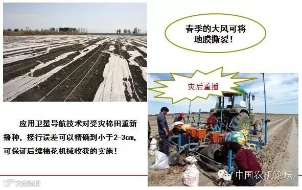 应用卫星导航技术对受灾棉田重新播种,接行误差可以精确到小于2-3cm,可保证后续棉花机械收获的实施!所以卫星导航技术对灾后重播也很有用。2013年,149团使用卫星导航自动驾驶技术播种棉花5万亩,较传统播种方式多播了1000亩,仅节省土地这一项,就可增收250万元。