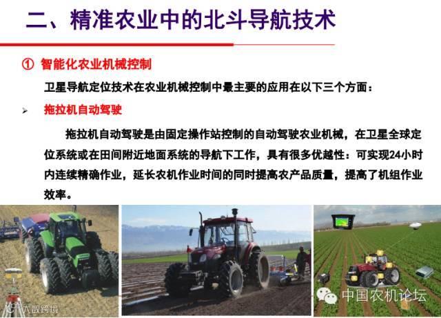 我们国家自主知识产权的北斗导航技术同样在大农业中具有较好应用前景。