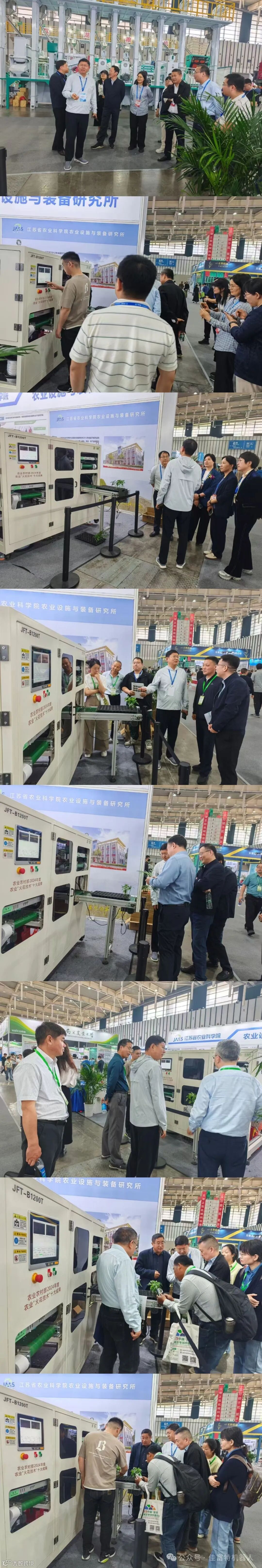 展会期间,江苏省农业农村厅副厅长曹丽虹、江苏省农业农村厅二级巡视员张耀春、江苏省农业科学院副院长王冉、江苏省农业科学院农业设施与装备研究所所长袁爱萍、江苏省南京农创中心科创投资集团董事长张鹏、安徽省农业农村厅农机化管理局局长刘成美、安徽省农机试验鉴定站站长汤春桥、江苏省淮安市农业农村局副局长李锐、江苏省淮安市农业技术推广中心主任史志荣等相关领导、嘉宾莅临展位指导交流。展会嫁接现场,机器人手臂轻盈舞动,精准完成自动取苗、切割、对接、夹合、成品苗自动码盘输出等动作,吸引现场领导及观众驻足。合肥佳富特的全自动嫁接机器人以“高精度、高效率、高适应性”的突破性表现,成为展会最亮眼的“科技明星”。