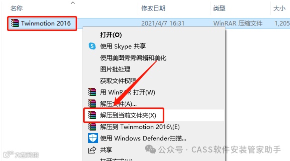 1.下载winmotion 2016软件安装包,鼠标右击压缩包选择【解压到当前文件夹】。