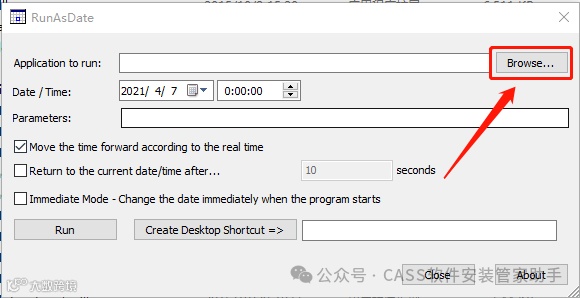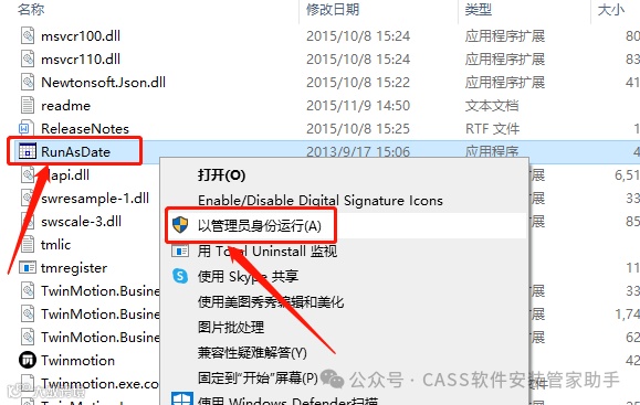 27.返回到第19步打开的文件夹中,找到【RunAsDate】程序,鼠标右击选择【以管理员身份运行】。