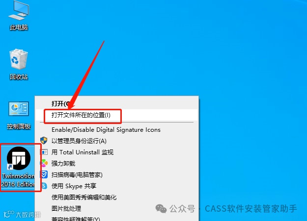 18.在桌面上鼠标右击Twinmotion软件图标,选择【打开文件所在的位置】。