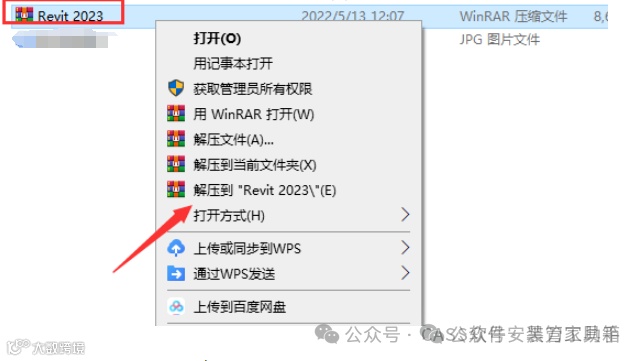 1.右键选择“Revit 2023”压缩包,选择“解压到Revit 2023”。