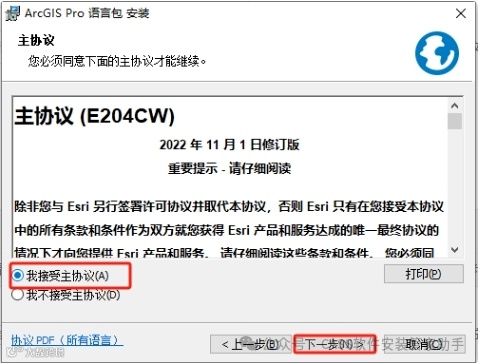 23. 勾选【我接受协议】,然后点击【下一步】。