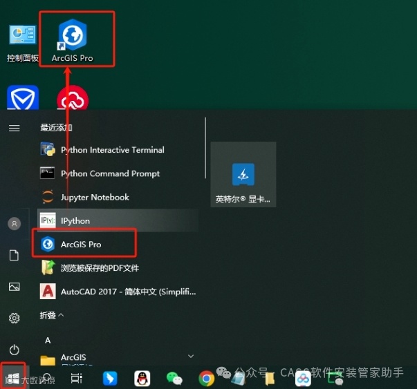 34. 在电脑开始菜单中找到【ArcGIS Pro】,右键拖动到桌面生成快捷方式。
