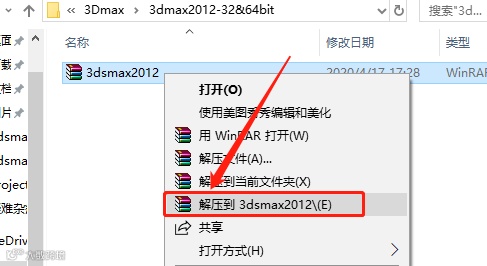 1.下载【3dmaX 2012】安装包,鼠标右击压缩包选择解压到3dsmax2012\(E)