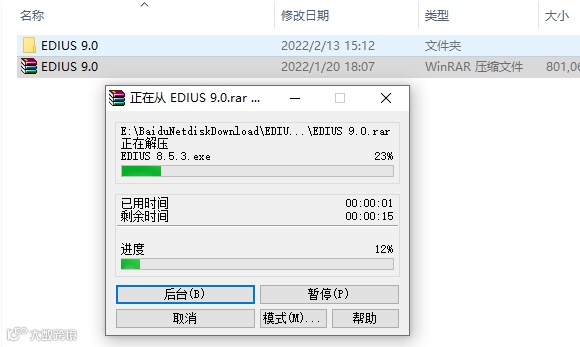 2.等待压缩包【EDIUS 9.0】解压完成。