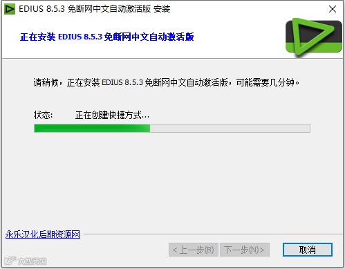 17.EDIUS软件自动安装中,请耐心等待安装进度走完即可。