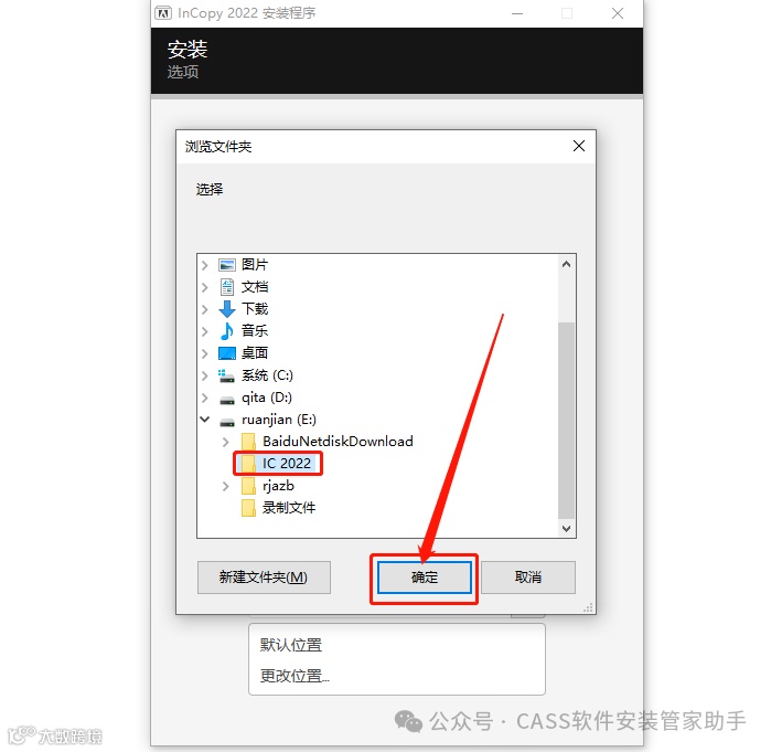 7.可在E盘或者其它磁盘里创建一个新的文件夹,然后点击【确定】即可。