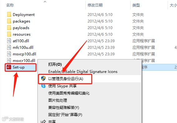 5.鼠标右击【setup】程序,选择【以管理员身份运行】。
