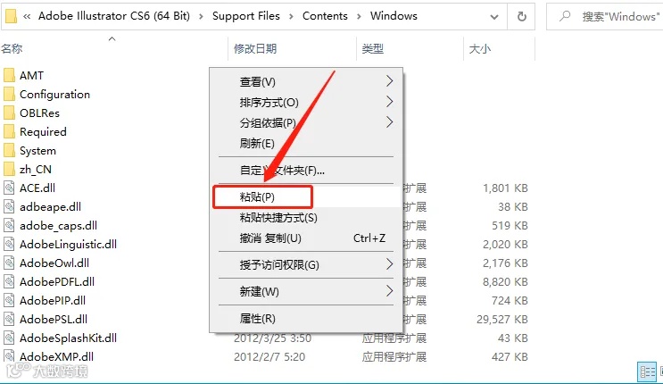 17.在文件夹空白处,鼠标右击选择【粘贴】之前复制的amtlib.dll。