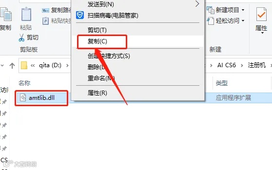 14.鼠标右击【amtlib.dll】,选择【复制】。