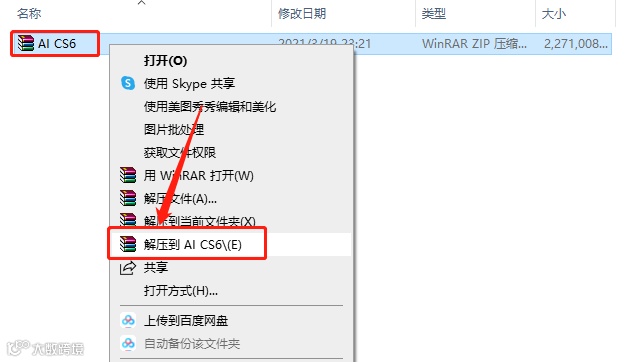 1.下载AI CS6安装包,鼠标右击压缩包选择【解压到AI CS6】。
