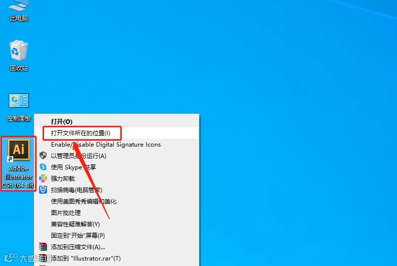15.桌面上鼠标右击AI CS6图标,选择【打开文件所在的位置】。