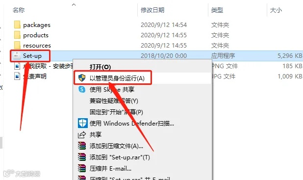 4.打开的文件夹中,鼠标右击【Set-up】,选择【以管理员身份运行】。