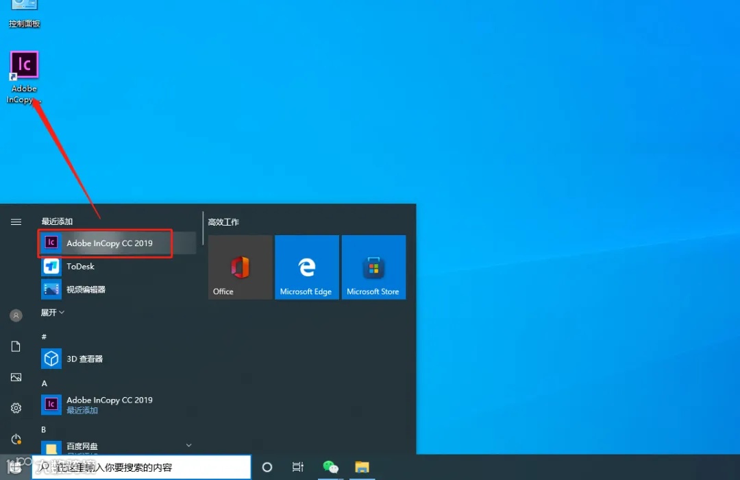 11.桌面左下角的开始菜单中找到Adobe InCopy软件,鼠标拖拽到桌面上即可创建桌面启动方式。