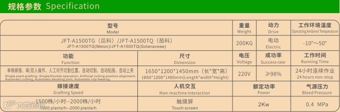 嫁接效率可达1500株-1800珠/小时。