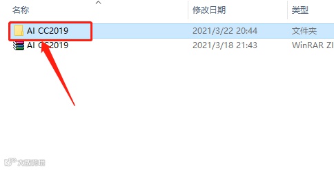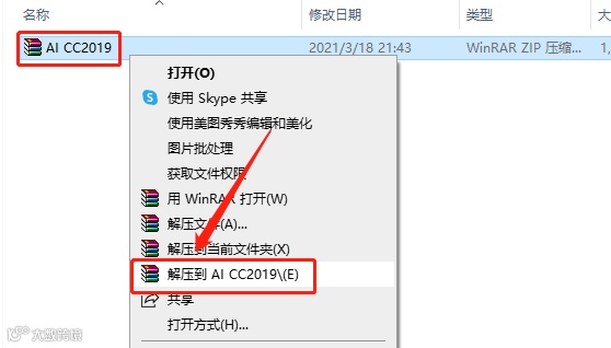 1.下载软件安装包,鼠标右击压缩包选择【解压到AI CC2019】。