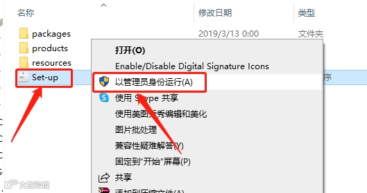 4.鼠标右击【setup】,选择【以管理员身份运行】。