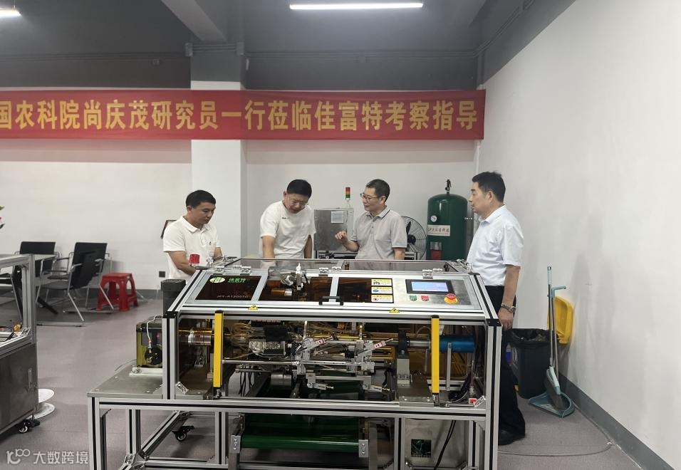 尚庆茂研究员一行在林茂先董事长的陪同下,参观了佳富特智能嫁接机器人的演示操作,切身体会和感受了机器人工作的便捷和高效,并对产品相关功能和使用方法同林总进行充分沟通,尚庆茂研究员对佳富特产品工艺之精良、技术之先进,给予了充分肯定。