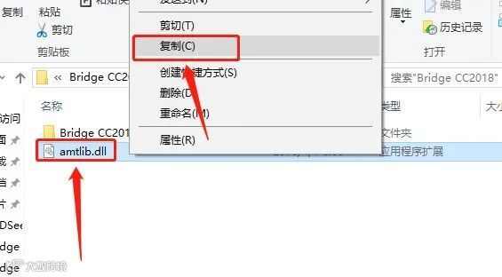 12.返回到【Bridge CC2017】文件夹,鼠标右击【AMTLIib】选择【复制】。