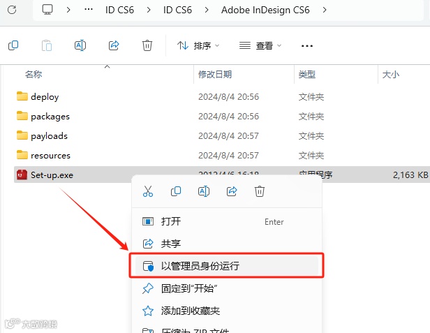 5.鼠标右击【setup】程序,选择【以管理员身份运行】。