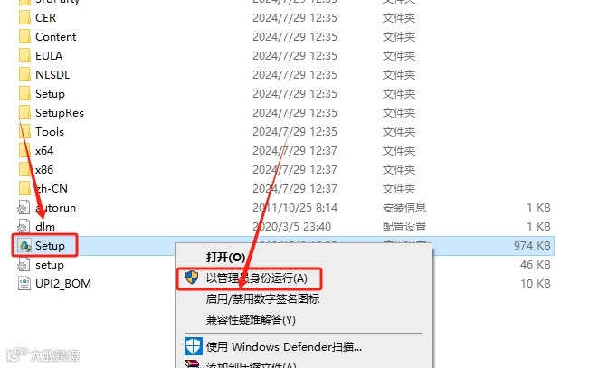 5.鼠标右击【setup】安装程序,选择【以管理员身份运行】。