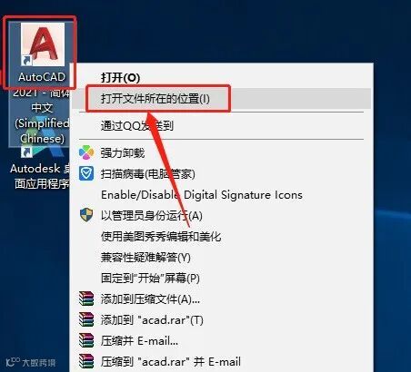 14.在桌面上找到【AutoCAD 2021】软件图标,鼠标右击选择【打开文件所在的位置】。