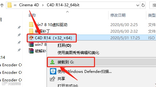 18.返回到【Cinema4D R14】安装包,鼠标右击【C4D R14(x32_x64)】,选择【装载到······】。